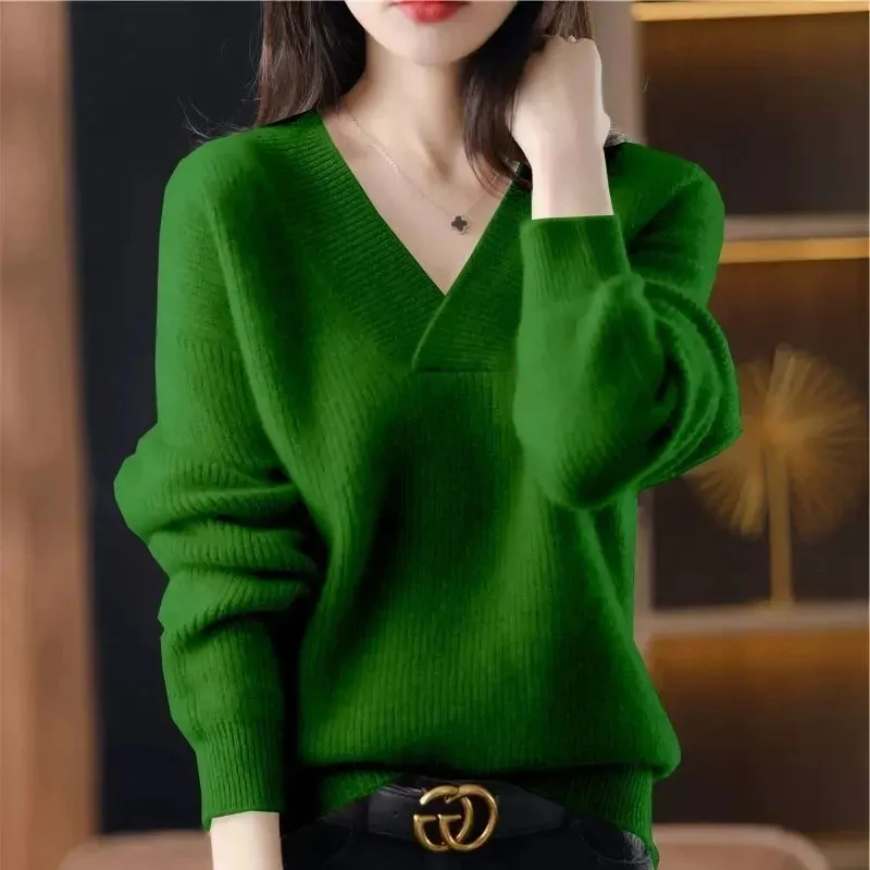 الصفحة الرئيسية اثاث كنزة كشمير نسائية أنيقة برقبة V للشتاء والخريف