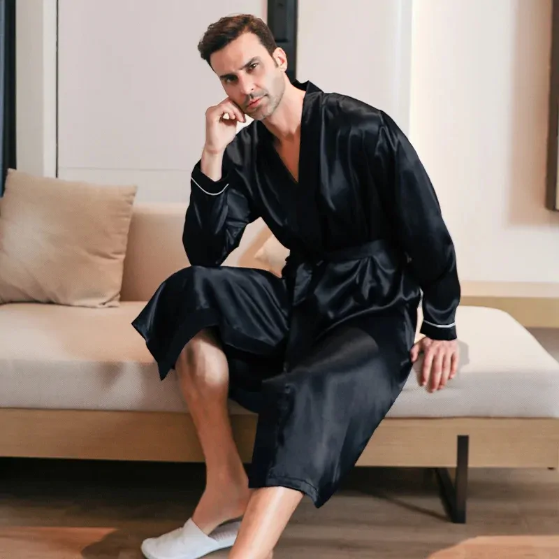 روب حرير جليدي رجالي بأكمام طويلة