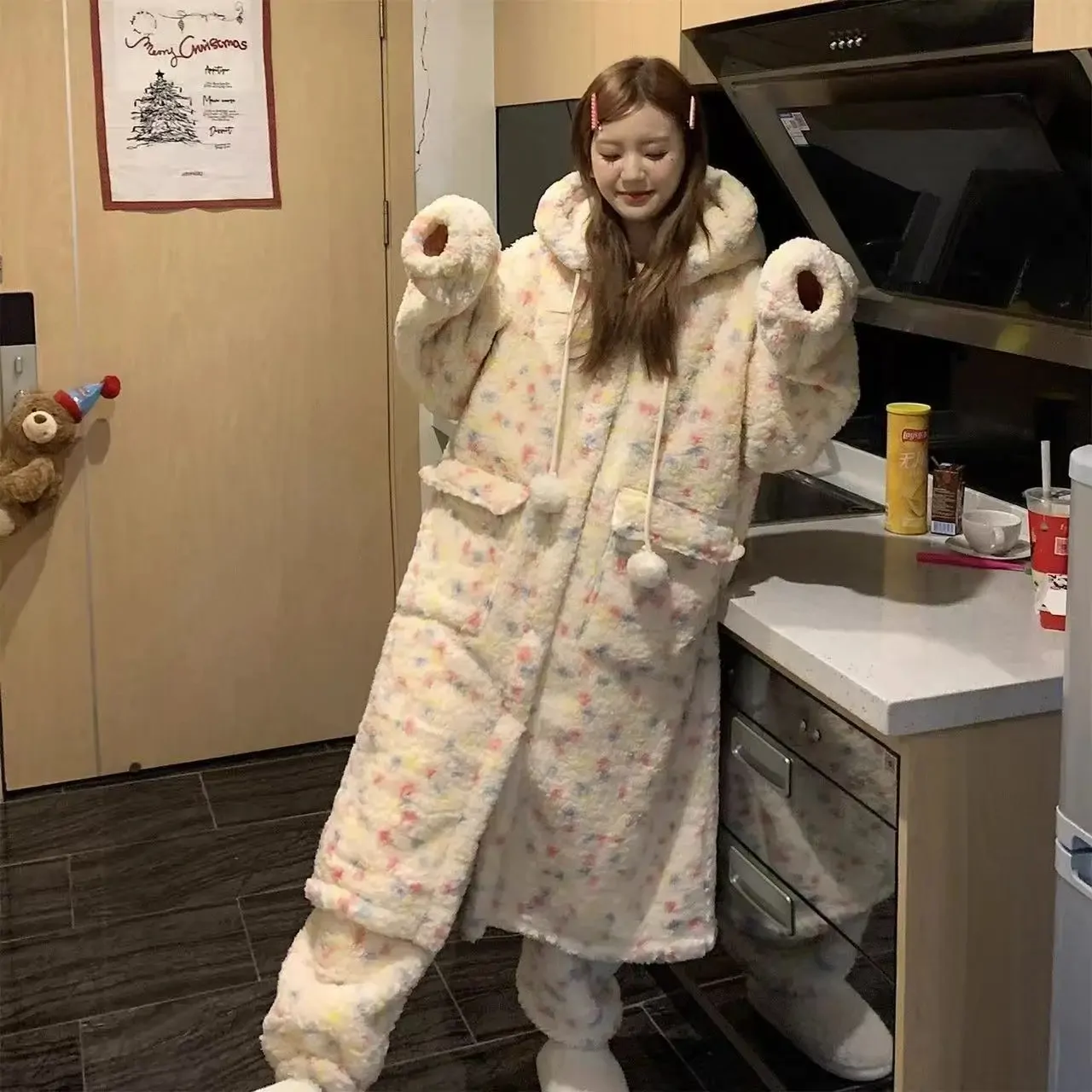 الصفحة الرئيسية اثاث بيجامة نسائية شتوية من الفرو المرجاني